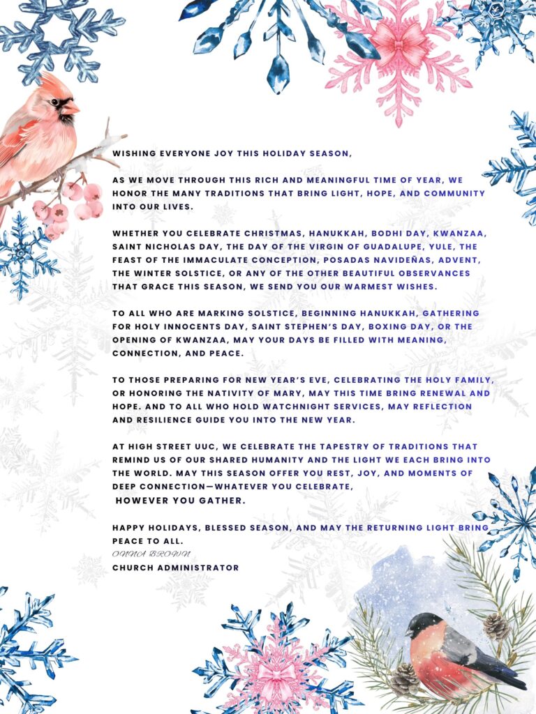 Happenings is a weekly publication of High Street Unitarian Universalist Church, proudly serving Macon, Georgia.